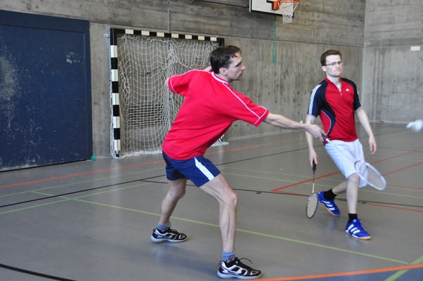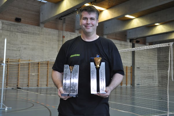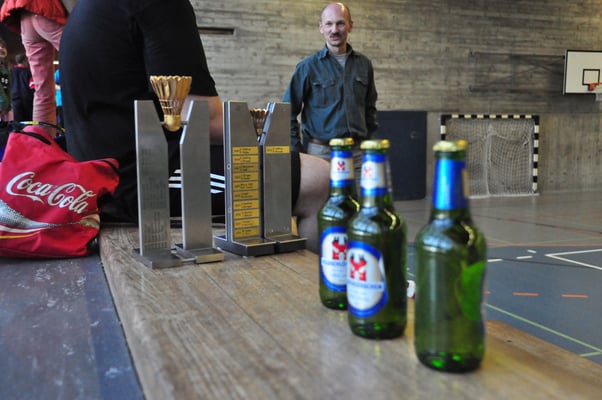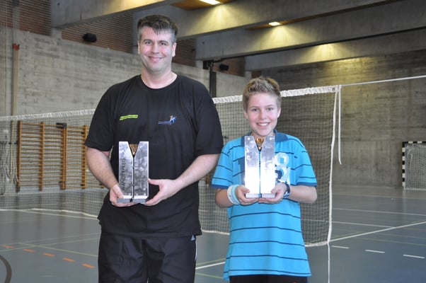 Tja, und weil das Gewinnen so schön ist und es so viel Spass macht, notorischen Siegern den Wind aus den Segeln zu nehmen, doppelte Werni im Doppel (jaja, so viel Gedoppel) gleich nach und liess René, dem Sieger der letzten drei Jahre, keine Chance: Er und sein Partner Marco Junior schlugen Heinz und Claudio souverän, die sich in Knochenarbeit über unzählige Dreisätzer ins Final gespielt hatten. (Ihr Halbfinal gegen Ratna und Marco Senior dürfte die Liste der längsten Spiele in der Rainweghalle anführen.) Wohl verdient hat den Sieg auch Marco Junior, der zeigte, was er in den letzten Monaten in Renés Training gelernt hat, und besonders am Netz überzeugte.